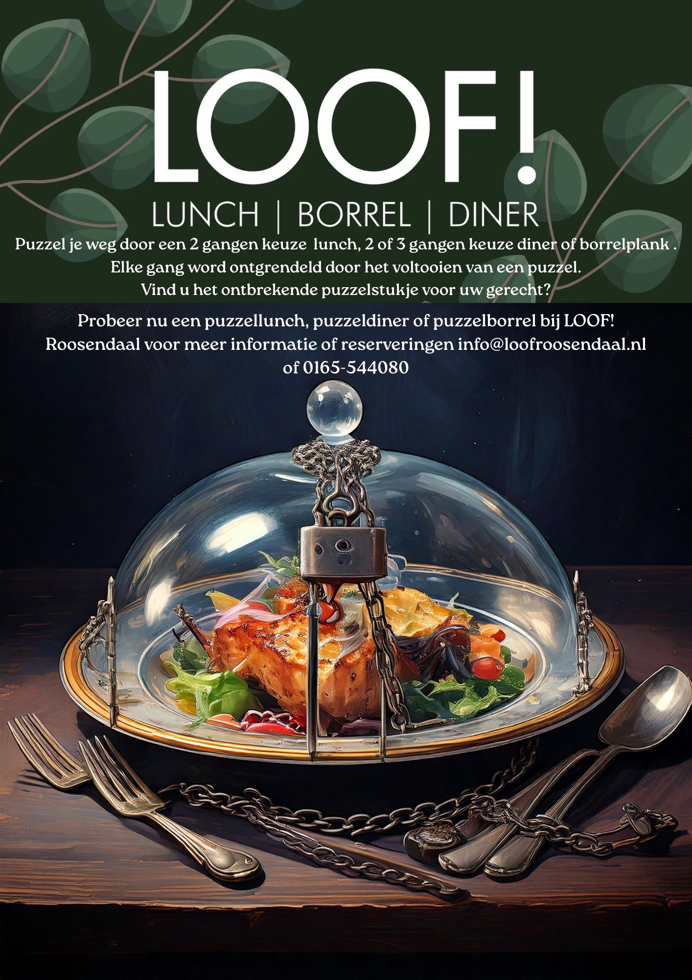 • Wat leuk dat u wilt reserveren voor een lunch of diner bij LOOF! Is de reservering voor vandaag dan verzoeken wij u om even telefonisch contact op te nemen via 0165 544 080.